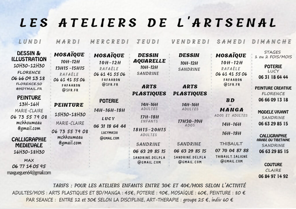 • Dimanche 9 et 23, 14h-16h : Poterie avec Lucy : 06 31 18 64 44 – 25 €