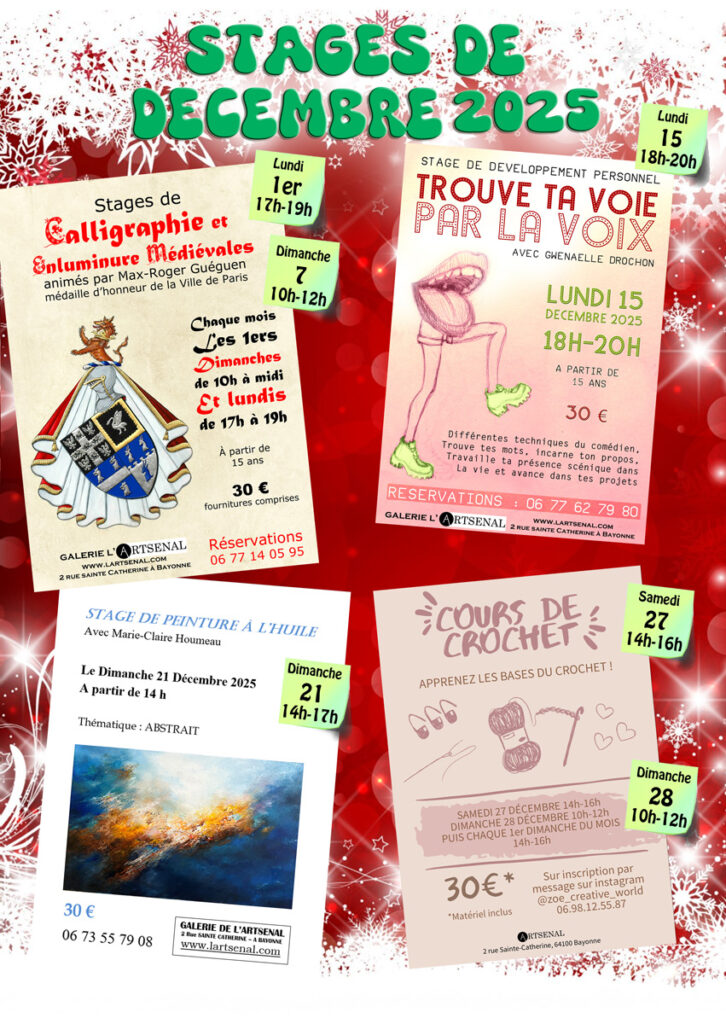 - Lundi 1er 17h-19h et dimanche 7 10h-12h : Calligraphie et enluminure avec Max : 06 77 14 05 95 – 30€